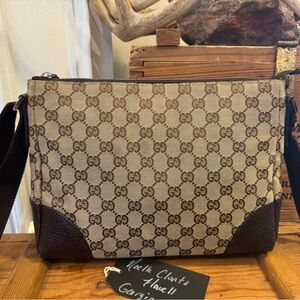 * Classic beige / brown monogram canvas, brown leather trim and silver tone hardware