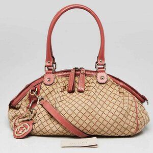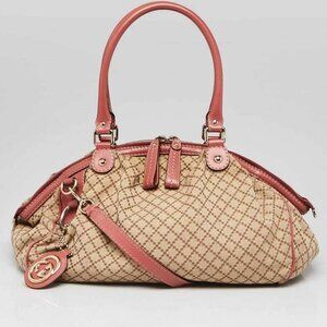 Gucci Beige/Pink Diamante Canvas Sukey Medium Boston Bag