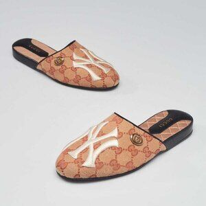 Gucci Beige/Red GG Canvas NY Yankees Mules Size 3.5/34