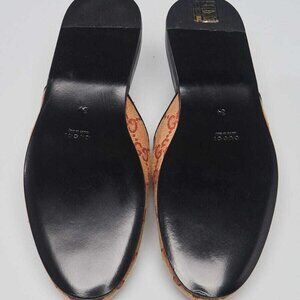Slip into these comfortable and fashionable mules from Gucci. Featuring chic canvas with large embroidered NY front and center These mules are a take on the classic Gucci loafer.
