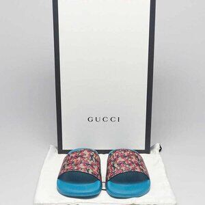 Relax in style with these chic Gucci GG Canvas Rubber Pool Slides. GG coated canvas uppers and padded insoles provide comfort for even the longest days. These slides feature GG Supreme print with red GUCCI print over it and are perfect for warm days!