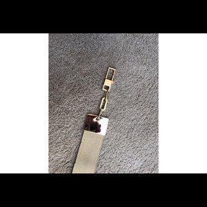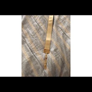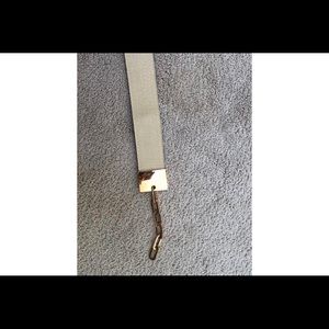 Gold belt with gold metal chain buckle. Small scratch on buckle. Would fit small waste.