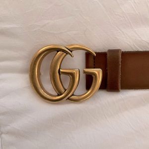Gucci belt. Beautiful condition approx.35” L (88.9 cm) without buckle. Buckle is approx. 3” W