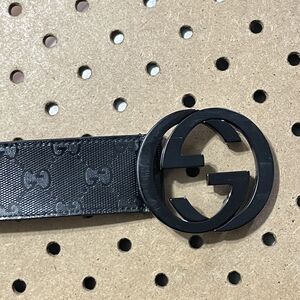 Gucci Belt Mens Size 34/85 Black Imprime Monogram GG Buckle Emblem Italy Made