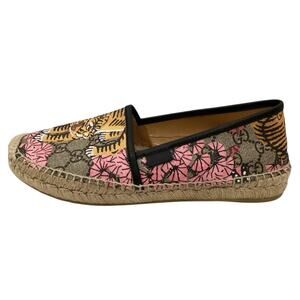 Gucci Bengal Tiger Floral Supreme Monogram Canvas Round Toe Espadrilles Size 8