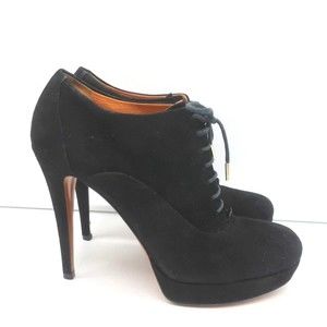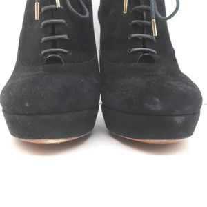 Gucci Betty Lace-Up Platform Booties Black Suede Size 38.5
