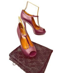 Gucci Betty T-Strap Platform Pumps In Burgundy leather Heels Pumps sz 37