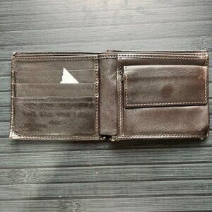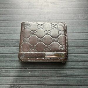 This authentic Gucci bifold wallet is crafted from rich brown Guccissima-embossed leather, offering a perfect blend of sophistication and practicality. The compact design opens to reveal a well-organized interior, ideal for daily use.