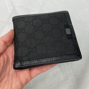 Gucci Bifold Compact Wallet GG Guccissima Monogram Canvas Black Web Tab
