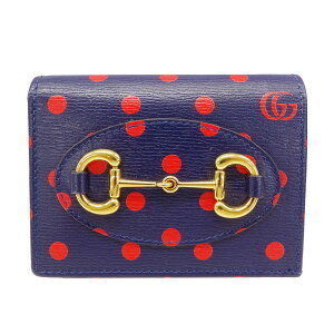 Gucci Bifold Polka Horsebit Red Blue Wallet Unique Navy Leather Dot