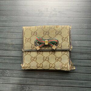 Gucci Bifold Wallet W Hook GG Pattern Brown Authentic|Used