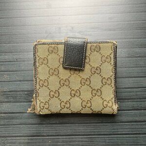 A timeless essential with a distinctive Gucci touch — this authentic bifold wallet is crafted from the signature GG monogram canvas in a classic brown colorway. The unique W hook closure adds a refined, functional detail, perfect for organizing your daily essentials.