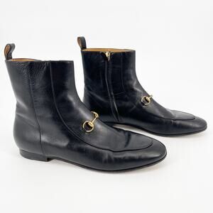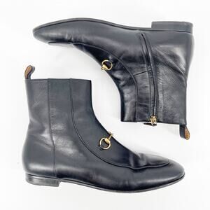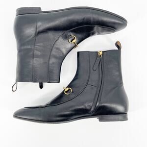Chic black leather ankle boots. Features gold hardware. Perfect for any occasion. I didnt reach fpr