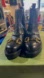Elegant black ankle boots. Features gold horsebit detail. Silver chain accent adds flair. Perfect for stylish outings.