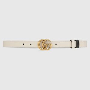 This black leather skinny belt reverses to white leather offering an alternative look.