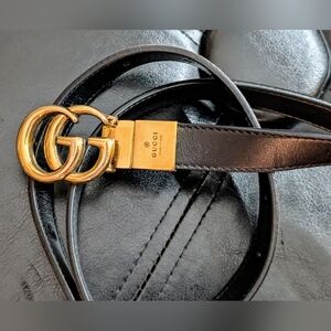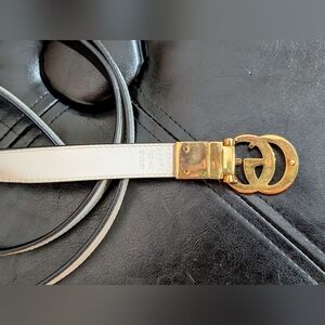 The previous owner added holes so this belt fits from 14-3x—rare find!! I absolutely LOVE this belt, so chic and classic.