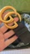 Sleek black belt with iconic gold GG emblem. Adds luxury to any look.