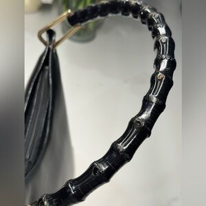 Chic black leather bag with iconic bamboo handle. Perfect for stylish outings.