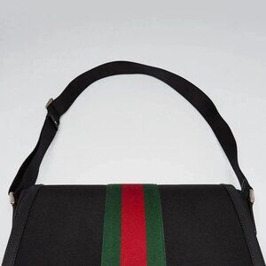 Gucci Black Canvas Techno Web Flap Messenger Bag