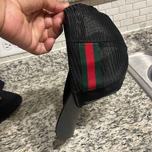 Bold nice almost brand new Gucci Blind mesh snapback trucker hat with striking red and green details. Features unique graphic design. Barely worn, great shape 10/10