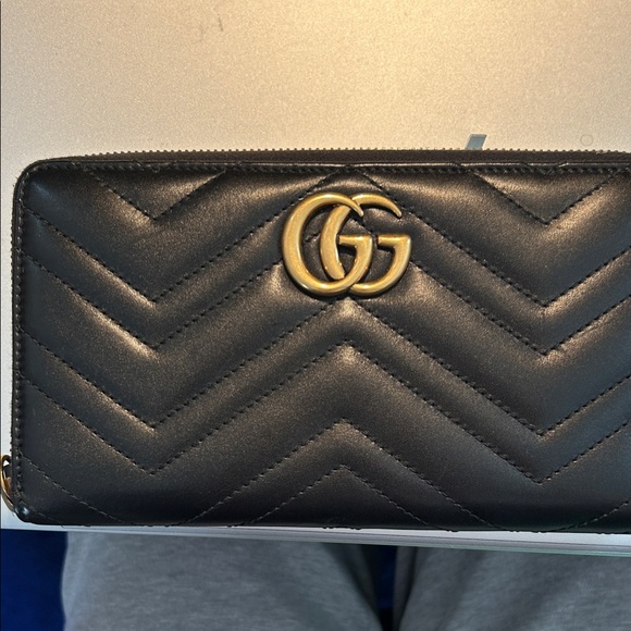 Gucci Black Chevron Wallet with Gold Emblem