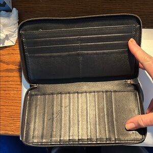Wallet measures 8” wide x 4” high. Very gently used. Looks brand new.