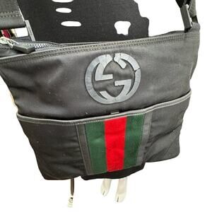 Gucci Black Cross Body Web Cross Body Messenger Bag With Adjustable Strap!!! All zippers work, this bag is in wonderful condition. The only call out is that the GG logo has some loss. It’s hard to notice, but I wanted to point it out. If this imperfection did not exist you know this would be around $1000. Take advantage of this and get a bargain for a luxury bag! Cross bodies are super hot right now!!