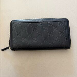 Gucci Black Embossed Wallet with Gold Emblem