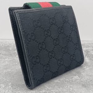Gucci Black GG Monogram Canvas Green & Red Web Logo Compact Unisex Wallet