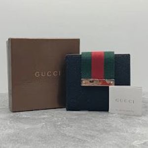 Gucci Black GG Monogram Canvas Green & Red Web Logo Compact Unisex Wallet W/ Box