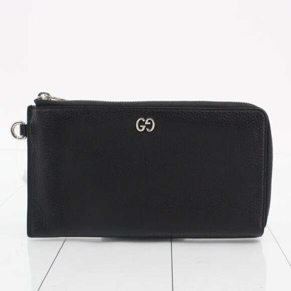 🖤 Gucci Black Grained Leather Zip Around Wallet Clutch