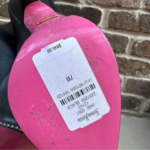 Elegant black heeled boots. Features gold accents. Perfect for stylish outings. Run slightly small. Never worn.