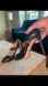 Elegant black Gucci heels featuring signature green and red straps. Perfect for any occasion.