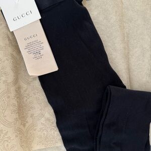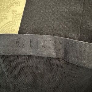 Black stretch knitted tights with iconic interlocking "G" pattern and elastic waistband. Brand new, only worn once to try on but unfortunately were the wrong size and Gucci does not accept returns on "intimates." Size chart included. I am 5'6" and due to my height I need a size large so I would recommend these for someone shorter than 5'6".