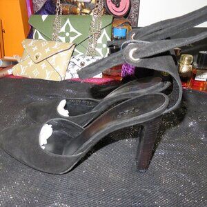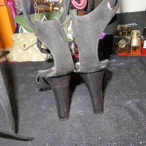 Gucci black Italian Suede leather luxury leg wrap closed toe pumps heels sz 7.5