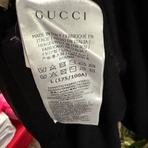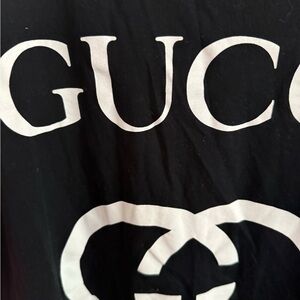Stylish Gucci tee. Rich black fabric. Crafted in Italy. This is a nice original Gucci short sleeve T shirt. This shirt is in very good condition. There are no flaws with shirt. Shirt just needs to be dry cleaned. Nothing is faded on the shirt. Shirt has been only worn few times. This shirt is 100% authentic.