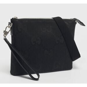 Gucci Black Jumbo GG Canvas Medium Messenger Bag