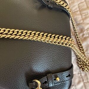Elegant Gucci backpack in rich black leather. Features embossed logo and front zip pocket. Perfect for everyday use. Stored in original dust bag with stuffing in a smoke free home. Hardly used and in excellent condition. Purchased at Gucci store in Palm Springs and original receipt is available.