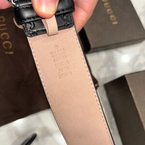 Elegant Gucci belt in black leather. Features a sophisticated design. Size 32
