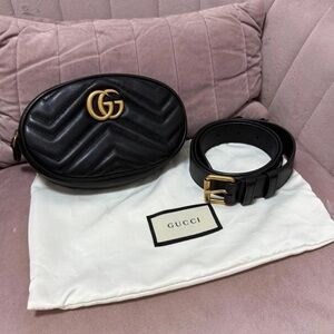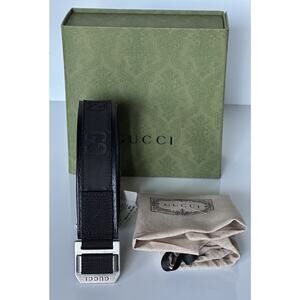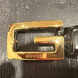 Gucci Black Leather Belt with Gold Buckle and Blue Interior