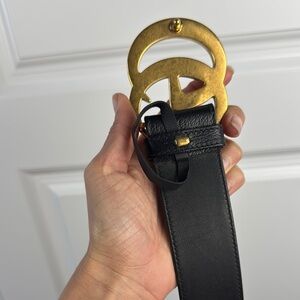 Gucci Black Leather Belt with Gold GG Buckle
