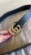 Elevate your style with this elegant authentic Gucci black leather belt. Featuring a striking gold buckle, it's perfect for adding a touch of luxury to any outfit. I don’t know the exact size in Gucci terms, I bought this years ago, but I wear a size medium and Jean size 27/28 and it fits perfect with room to add more holes if I needed. Gently used condition.