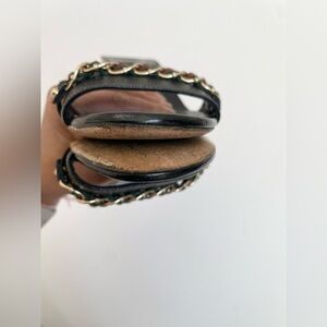 Gucci Black Leather Capri Kittle heel mules with web and chain link details 8.5