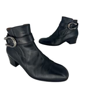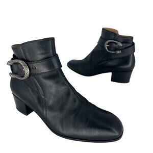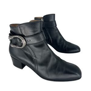 Gucci Dionysus Black Leather Ankle Boots 38.5 Buckle Detail Fall Classic