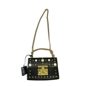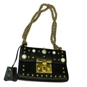 Gucci Black Leather Faux Pearl Padlock Shoulder Bag