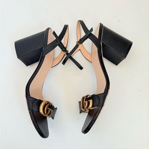 Gucci Black Leather GG Marmont Ankle Strap Block heel Sandals EU 38.5