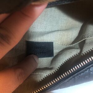 Elegant black leather handbag. Features classic Gucci style. Perfect for any occasion.