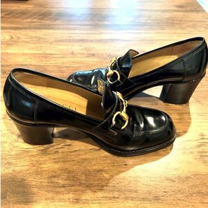 Vintage black Gucci block heel pumps with gold horsebit accent - excellent vintage condition! Size 6.5. Made in Italy.