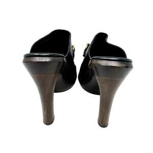 Preloved and authentic Gucci platform clog heels in supple black pebbled leather with classic equestrian horsebit hardware. – Size: 7 – Genuine leather upper – Studded trim – Wood platform and heel – Round toe – Slip-on mule/clog silhouette – Iconic horsebit detail in gold-tone hardware – Made in Italy -Approximate measurements: 5” heels, 1” platform Condition: In very good preowned condition. Some scuffing at heels and wear to outsoles consistent with light use. Structurally solid and clean overall. – No box or dustbag Perfect Y2K statement piece, ideal for fall layering or styled with denim, trousers, or maxi skirts. A rare Gucci collector’s style! Keywords: Gucci clogs, platform heels, vintage Gucci, horsebit, equestrian, Y2K, early 2000s, fall boots, wood heel, designer mules, cottagecore, boho chic, Italian luxury