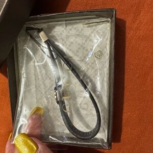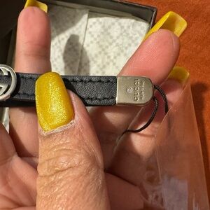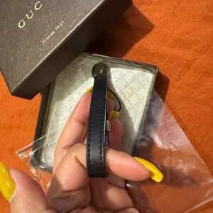 Elevate your style with this Gucci black leather keychain. Perfect for adding a touch of luxury to your everyday essentials.